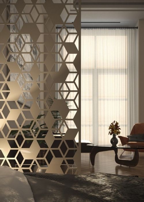 Trong không gian nội thất, nhôm cắt laser thường được ứng dụng để tạo vách ngăn nhôm trang trí, ốp tường, trần trang trí hoặc các chi tiết decor mang phong cách hiện đại.