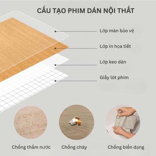 Cấu tạo của phim dán nội thất sẽ bao gồm