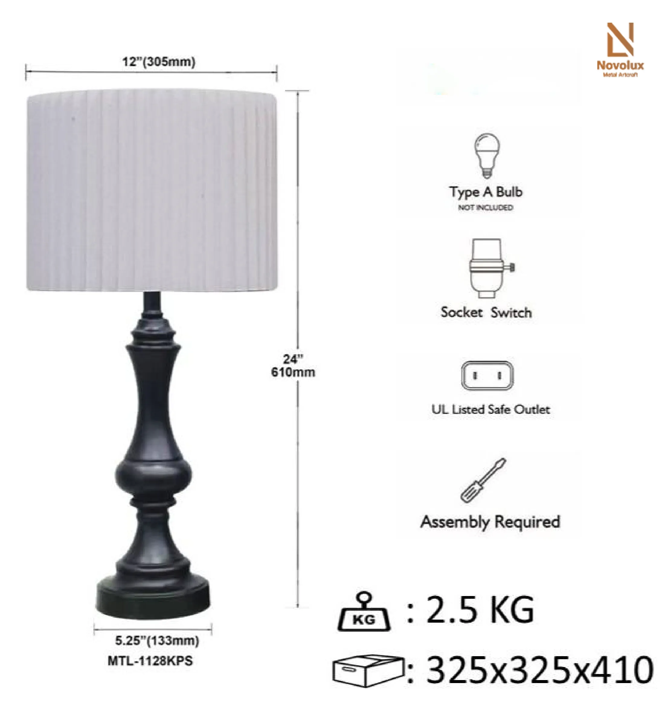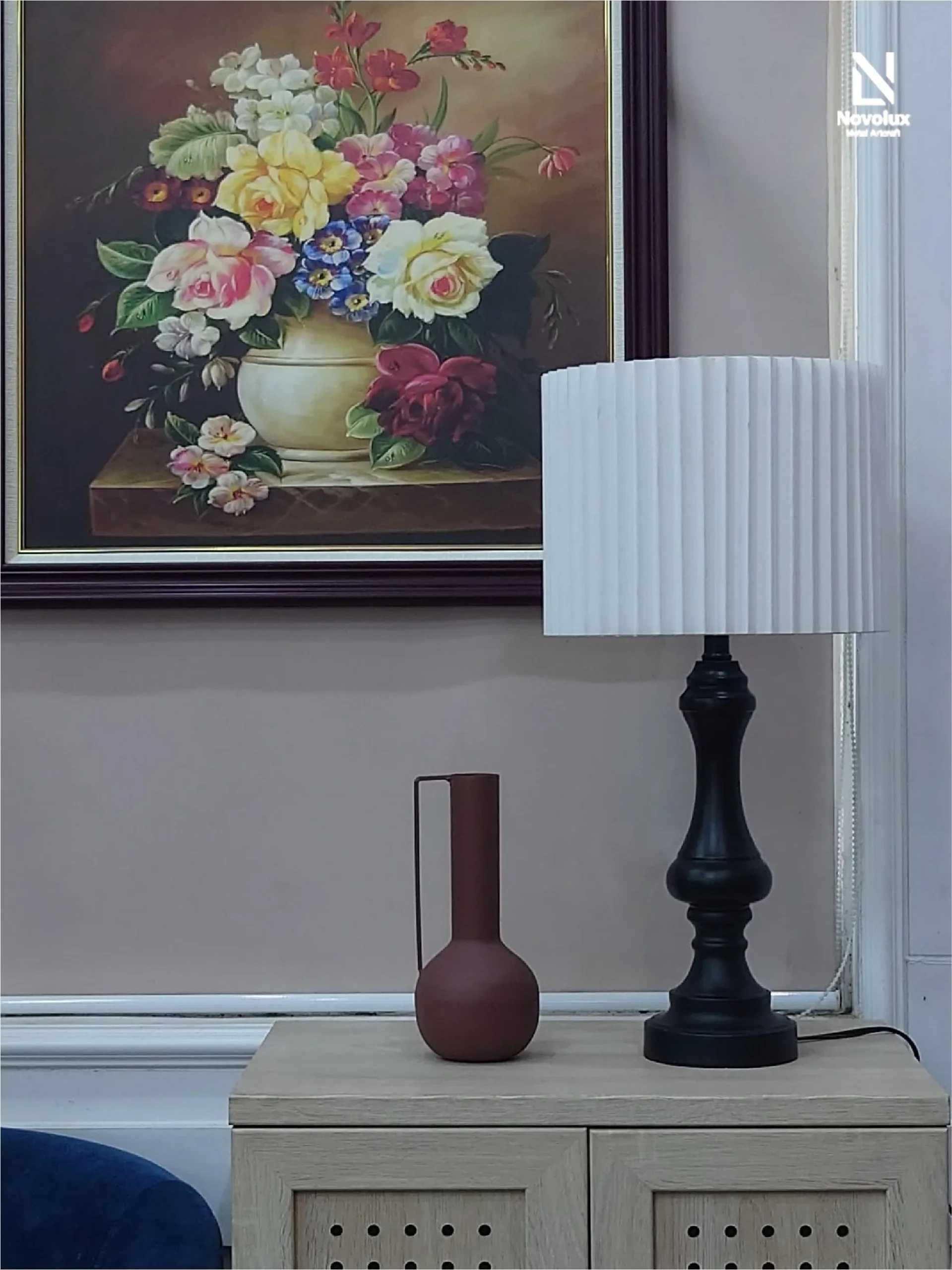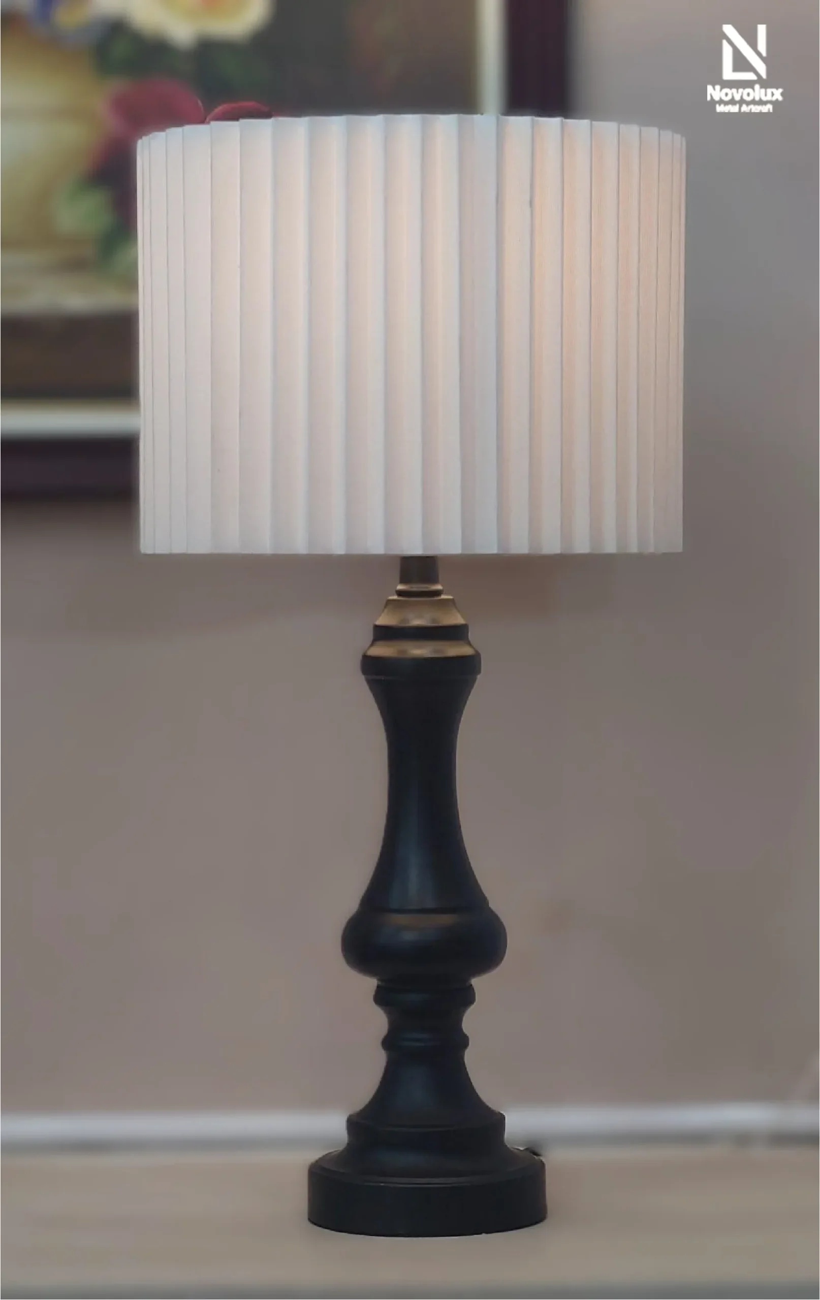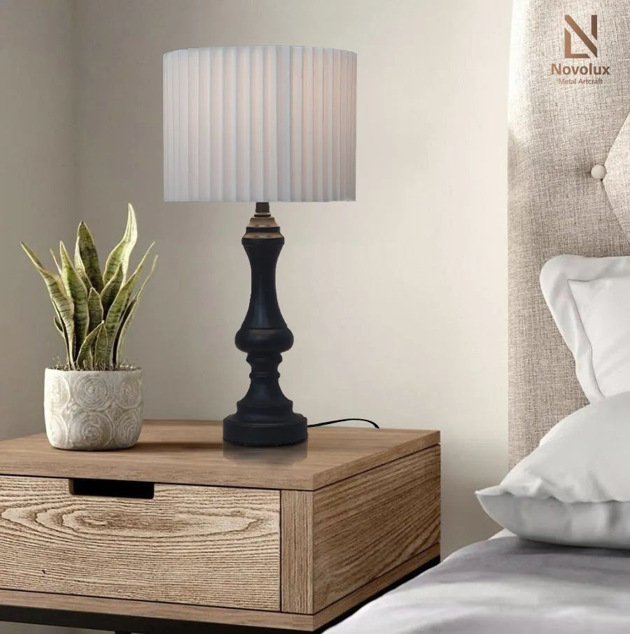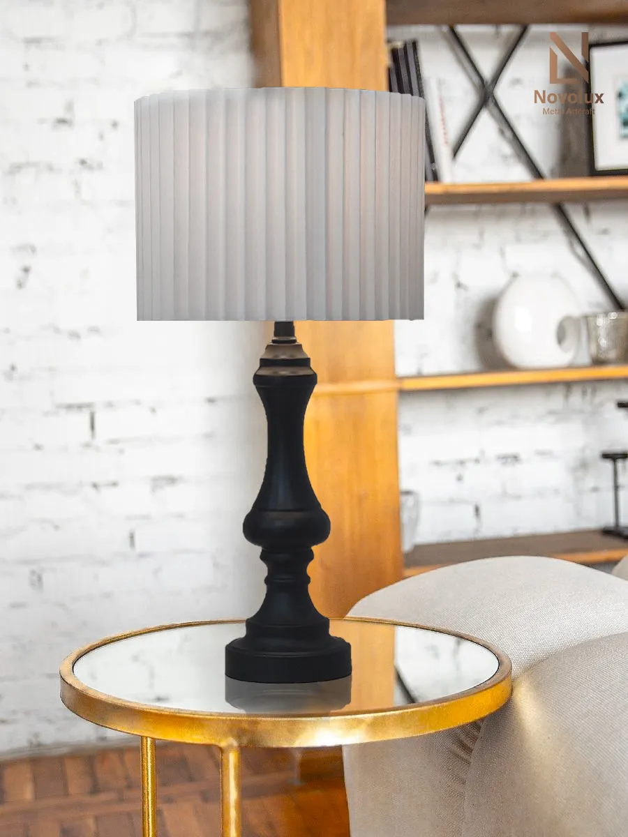 Đèn bàn trang trí Elias Royal sở hữu thiết kế cổ điển tinh tế với thân kim loại sơn tĩnh điện tông đen sang trọng, kết hợp cùng chao vải xếp ly tạo cảm giác ấm áp và dễ dàng hòa hợp với nhiều phong cách nội thất khác nhau.