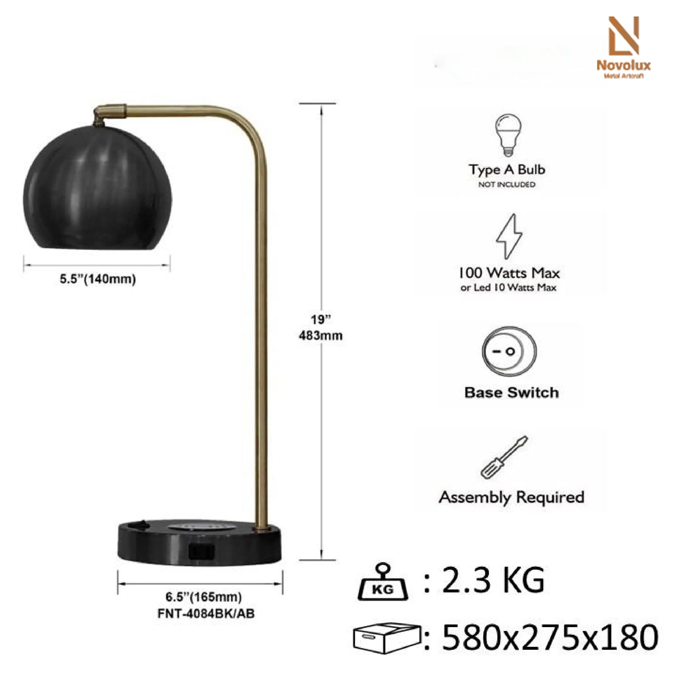 Đèn bàn màu đen mờ hiện đại Tomas Mat Metallic FNT-4084BK/AB