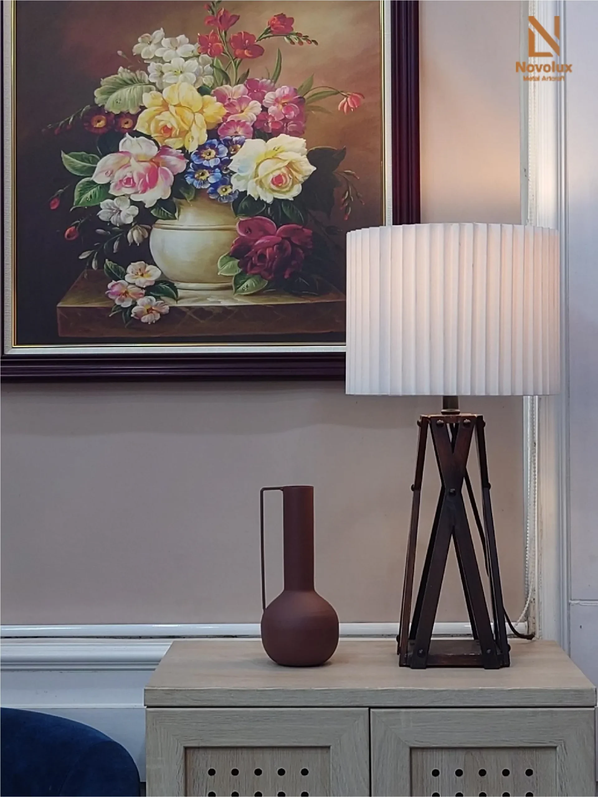 Đèn bàn Teak Angelo mang vẻ đẹp ấm áp và sang trọng, phù hợp cho phòng ngủ, phòng làm việc hoặc không gian nội thất mang phong cách cổ điển – tinh tế. Thân đèn kim loại sơn hiệu ứng vân gỗ Teak mang lại cảm giác gần gũi, sang trọng nhưng vẫn bền bỉ theo thời gian.