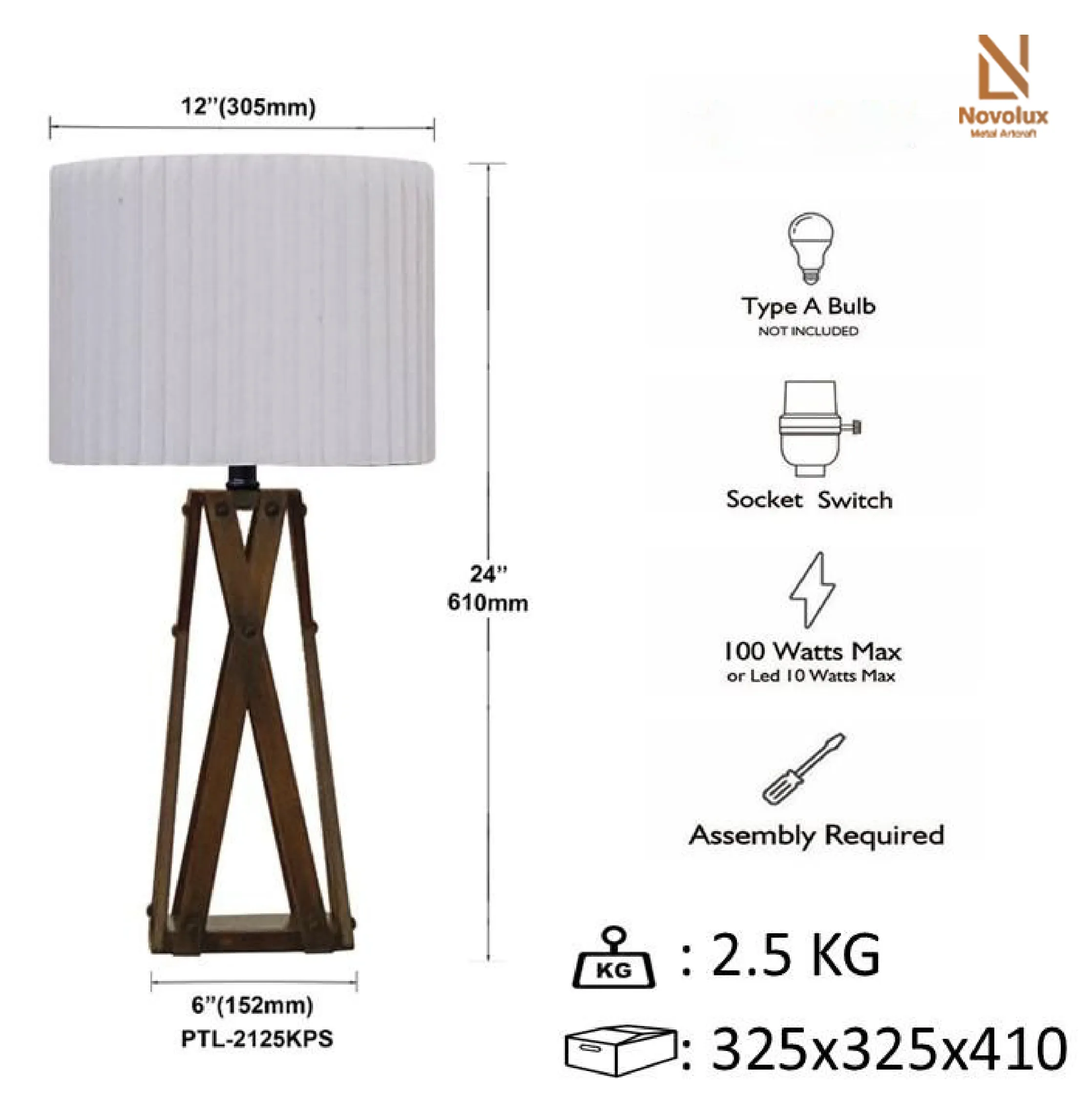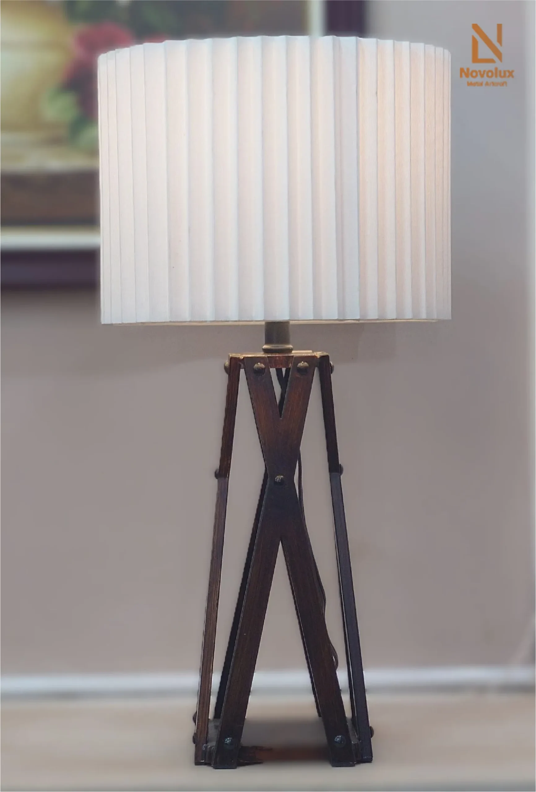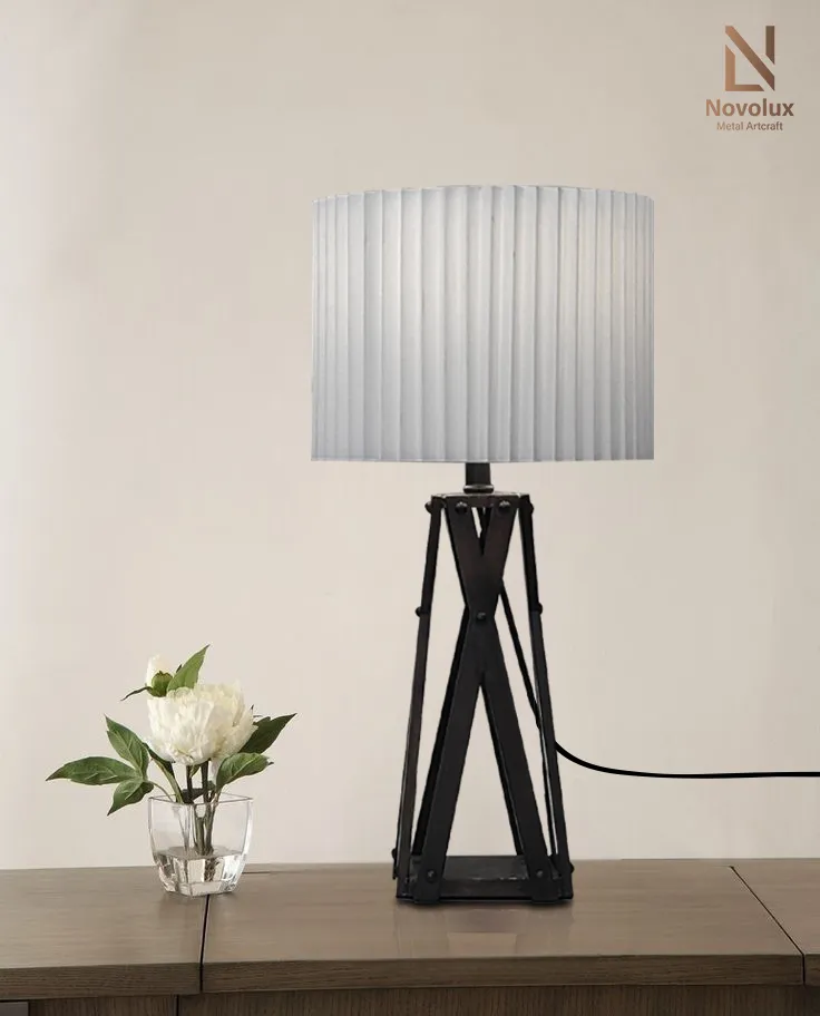 Đèn bàn trang trí kim loại vân gỗ cao cấp – Teak angelo PTL-2125KPS