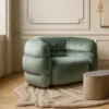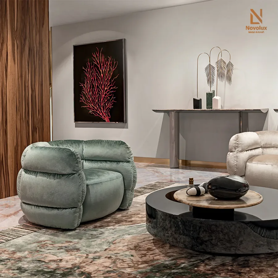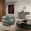 Sự kết hợp tinh tế giữa cảm giác thoải mái và vẻ đẹp sang trọng, nổi bật với lớp bọc vải màu xanh lá thanh lịch trên khung gỗ dán chắc chắn. Phần ghế ngồi được nâng đỡ bằng hệ dây đai đàn hồi, kết hợp đệm mút polyurethane cấu trúc ô mở, bọc trong lớp lông ngỗng chần bông cao cấp, mang lại độ êm ái vượt trội và cảm giác thư giãn hoàn hảo. Tay vịn và tựa lưng được xử lý bằng polyurethane đa lớp với mật độ khác nhau, giúp nâng đỡ cơ thể tối ưu trong từng chuyển động. Tất cả tạo nên một thiết kế chỉn chu, biến chiếc ghế bành này thành điểm nhấn lý tưởng cho mọi không gian sống tinh tế và đẳng cấp.