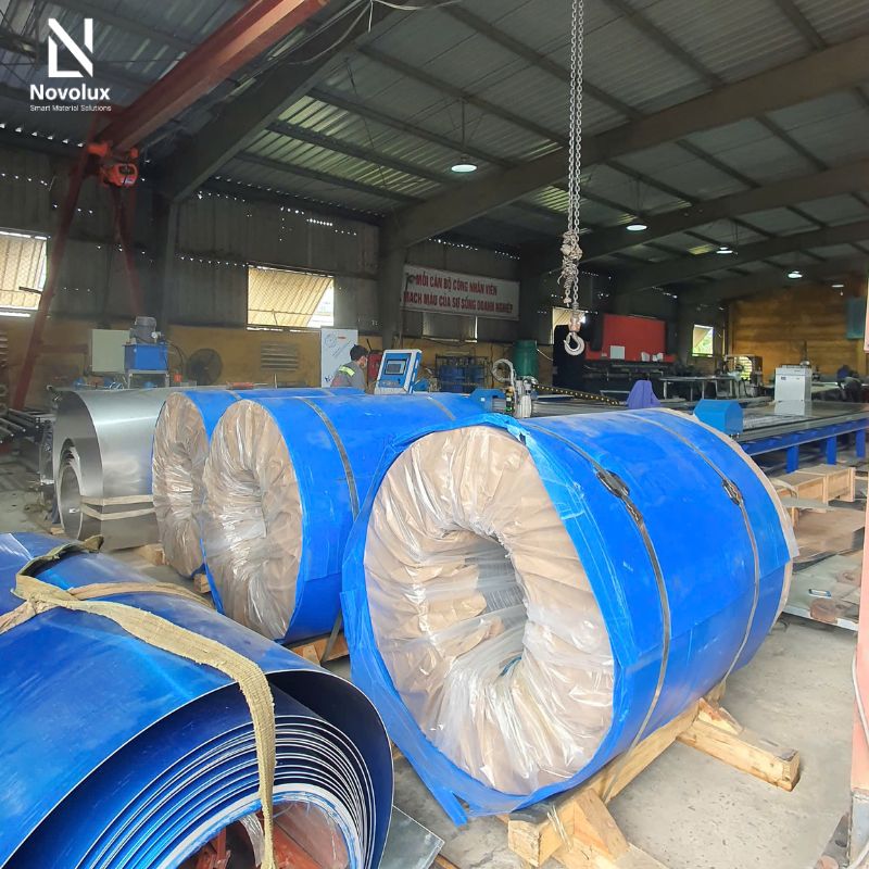 Nhôm tấm 3003 được cung cấp với nguồn gốc rõ ràng, đảm bảo thành phần hợp kim ổn định, bề mặt phẳng đẹp và đúng độ dày tiêu chuẩn. Điều này giúp quá trình gia công chính xác hơn, hạn chế hao hụt và đảm bảo độ bền lâu dài cho công trình. Ngoài khổ tiêu chuẩn, Novolux nhận cắt lẻ theo yêu cầu, tối ưu chi phí vật tư và giảm tồn kho cho khách hàng.