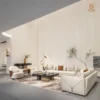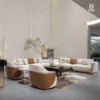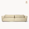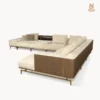 Sofa được chế tác từ khung gỗ nguyên khối kết hợp ván ép gỗ linh sam, đệm polyurethane đa tỷ trọng và hệ thống dây đai đàn hồi dưới ghế, đảm bảo độ bền và sự thoải mái lâu dài. Bề mặt hoàn thiện bằng vải cao cấp, điểm nhấn bằng những mảng đệm rời với đường viền màu tương phản ở phần tay vịn và tựa lưng.